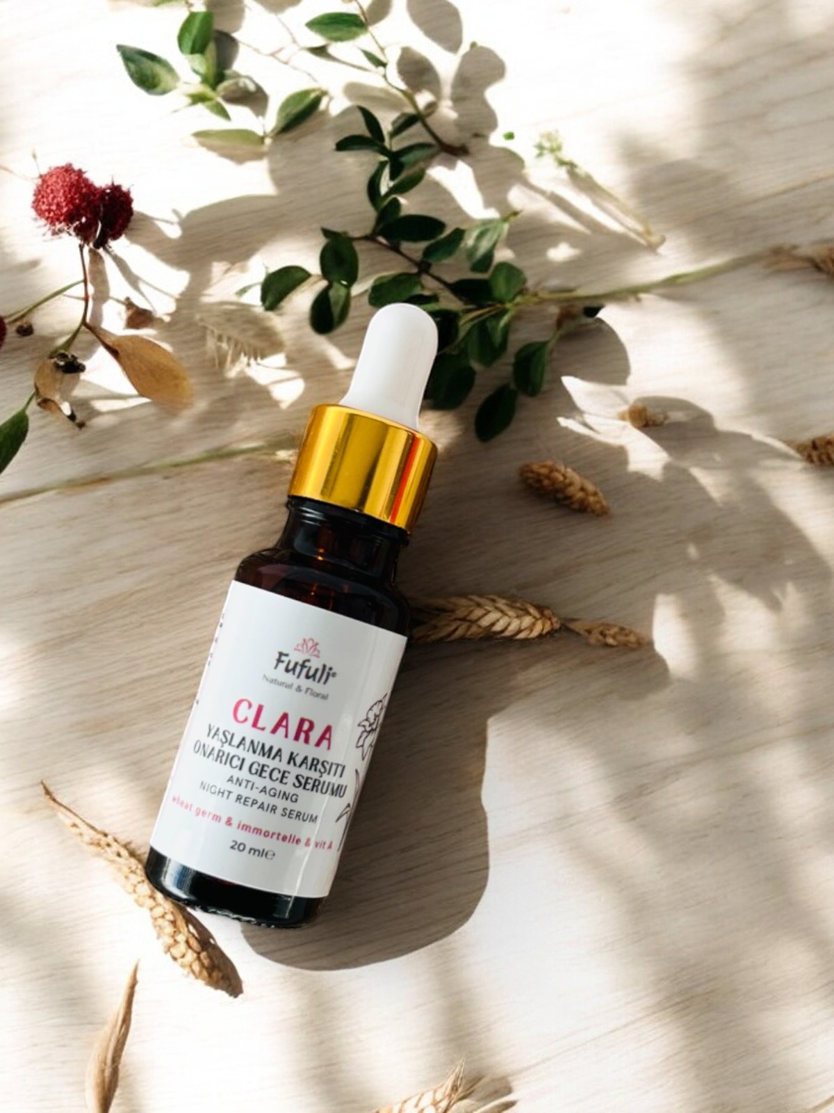 Clara onarıcı gece serumu antioksidan ve rejeneratif özellikleri yüksek içeriği ile cilt dokunuzda iyileşme, kırışıklıklarda azalma ve lekelerde açılma hedeflemektedir. A vitamini ( retinyl palmitate) içeriği ile hem yüzeye hem de cildin daha derin katmanlarına etki ederek kolajen üretimini uyarır. Kolajenin parçalanmasını engeller ve kırışıklıkların oluşmaya başladığı derinin daha derin tabakasını kalınlaştırır. Hücre yenilenmesini hızlandırarak ve bir peeling görevi görerek lekeli cilt dokusunu tamir etmeye ve ton eşitliği sağlamaya yardımcı olur. E vitamini, B vitamini ( B1, B2, B3, B6) ve mineraller (çinko, demir, potasyum, kükürt, fosfor ve linoleik asit) açısından zengin soğuk sıkım yağlar barındırır. Bu yağlar cildin doğal yapısında bulunan ve yaş aldıkça azalan bariyer moleküllerini cilde geri kazandırır.